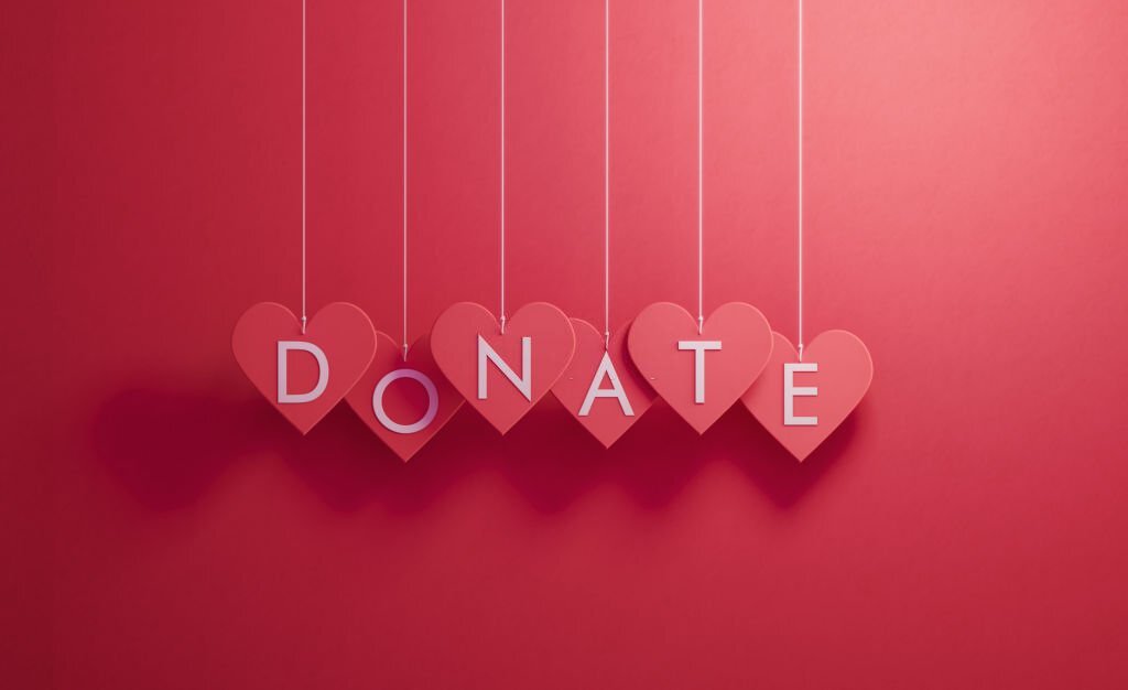 Gallery Donate writes over red heart shapes hanging over red background, Horizontal composition. Donation concept. The word donate on wooden blocks with heart icon against blue background. Charity and donation concept. Two hands in shape of heart,vector illustration. EPS 10.